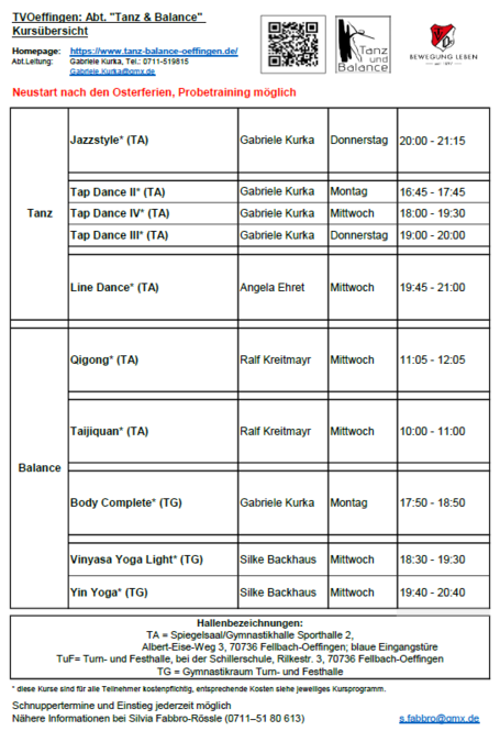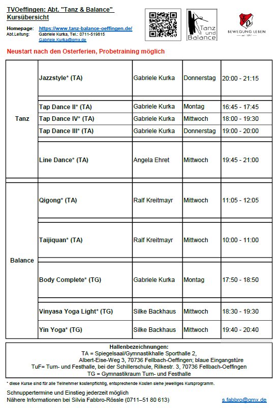 Neustart der Kurse von "Tanz und Balance" nach Ostern